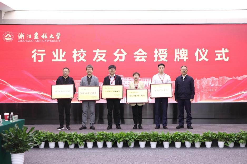大會還舉行了行業校友分會授牌儀式和行業校友分會基金揭牌儀式。胡祖吉為室內與家具設計行業分會、園林與建筑行業分會、生態環境行業分會、鄉村振興帶頭人校友分會、集賢學院校友分會授牌。