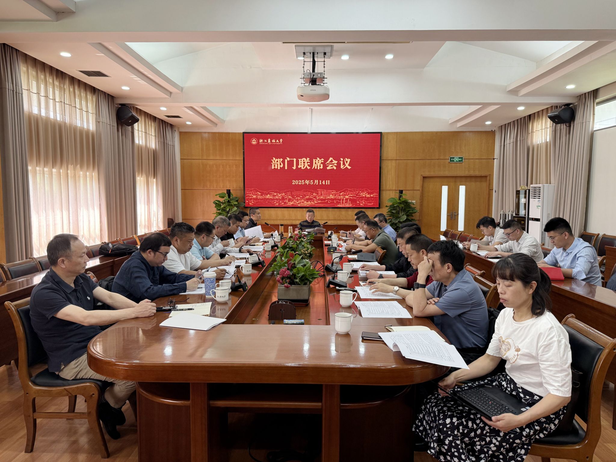 5月14日,副校長吳家勝主持召開分管部門2025年第二次部門聯(lián)席會(huì),聚焦年度工作目標(biāo),回顧工作開展情況,對(duì)標(biāo)對(duì)表部署下階段工作,推動(dòng)各項(xiàng)重點(diǎn)工作落實(shí)落細(xì)。