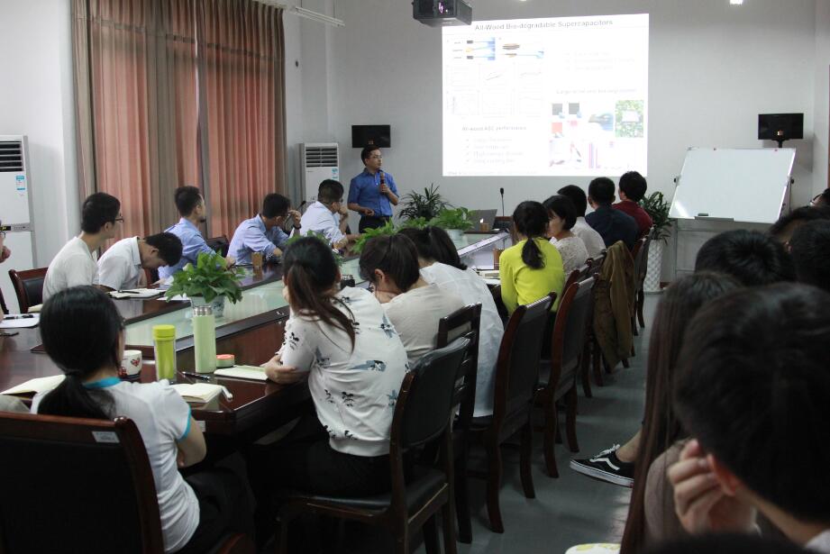 ?胡良兵教授向大家介紹了納米纖維素的結構特征、優良特性,以及其課題組關于納米纖維素在光學材料、能原材料、極端材料的研究工作,并著重介紹了其課題組所制備的納米紙和透明木材在光學上的獨特性以及木質電池在儲能方面的優良性能。