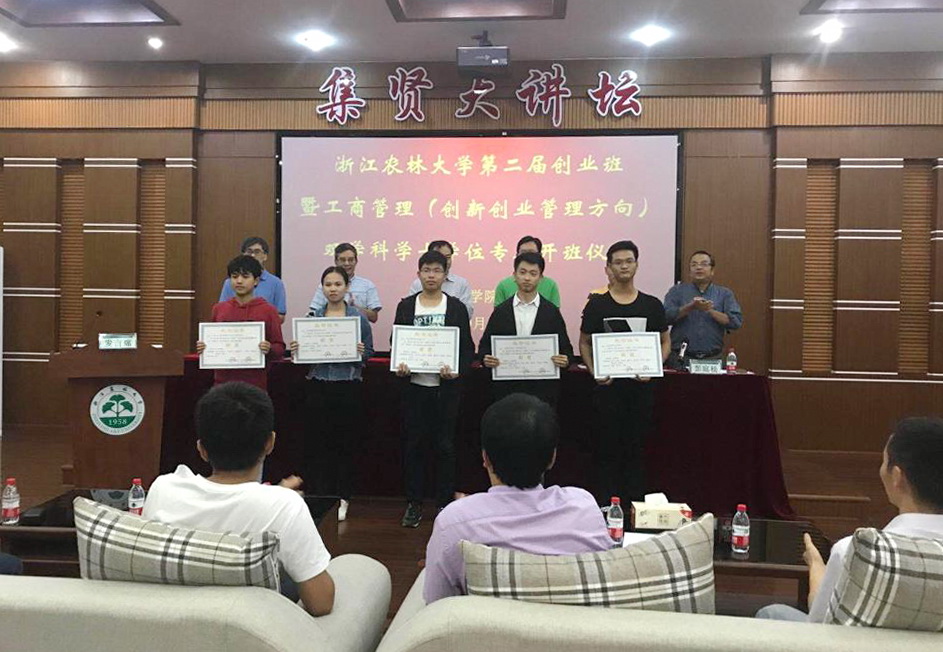 儀式上還對(duì)第三屆浙江省“互聯(lián)網(wǎng)+”大學(xué)生創(chuàng)新創(chuàng)業(yè)大賽獲獎(jiǎng)團(tuán)隊(duì)進(jìn)行了表彰;為創(chuàng)業(yè)班和工商管理(創(chuàng)新創(chuàng)業(yè)管理方向)雙學(xué)科學(xué)士學(xué)位班的班主任和學(xué)業(yè)導(dǎo)師頒發(fā)了聘書。